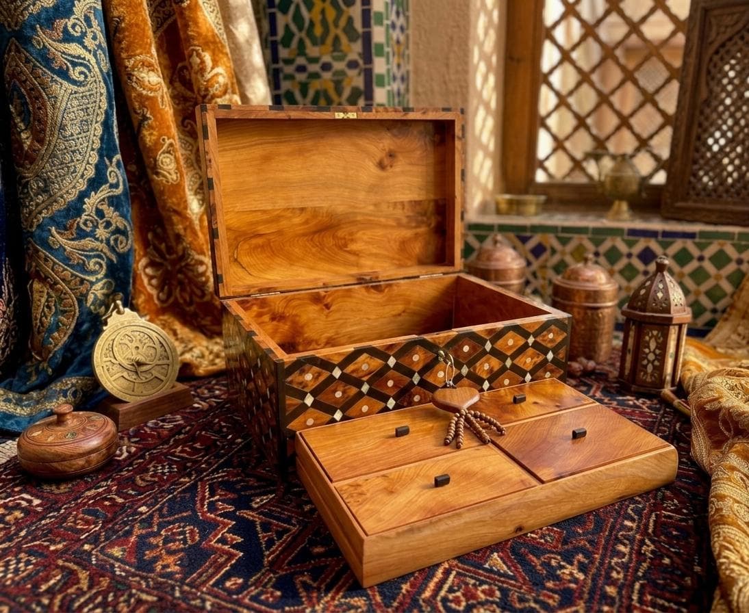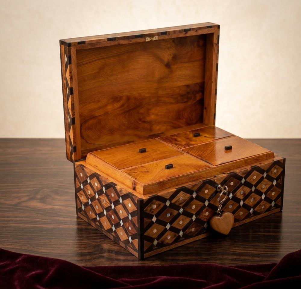 → 1 large Thuya burl wood chest (30×20×12 cm)