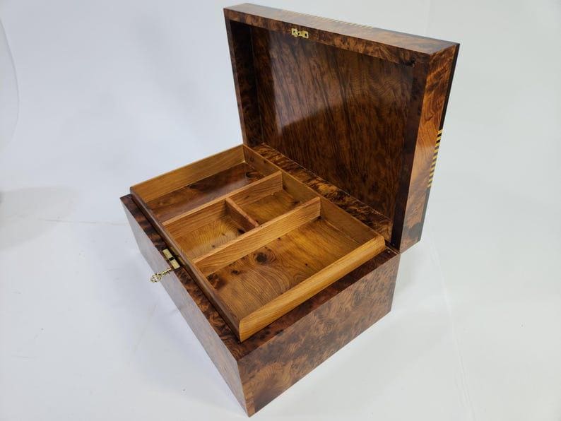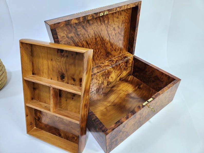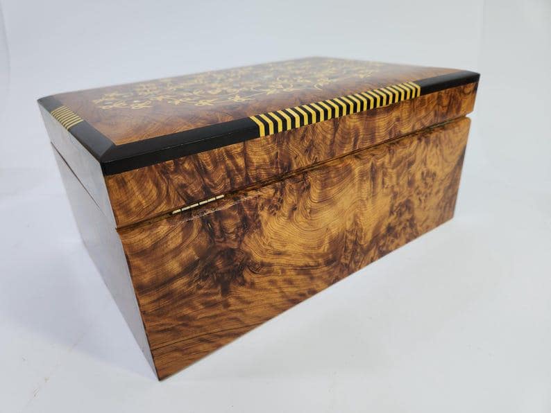 → 1 Thuya burl wood keepsake box (12×8×5.5 in)